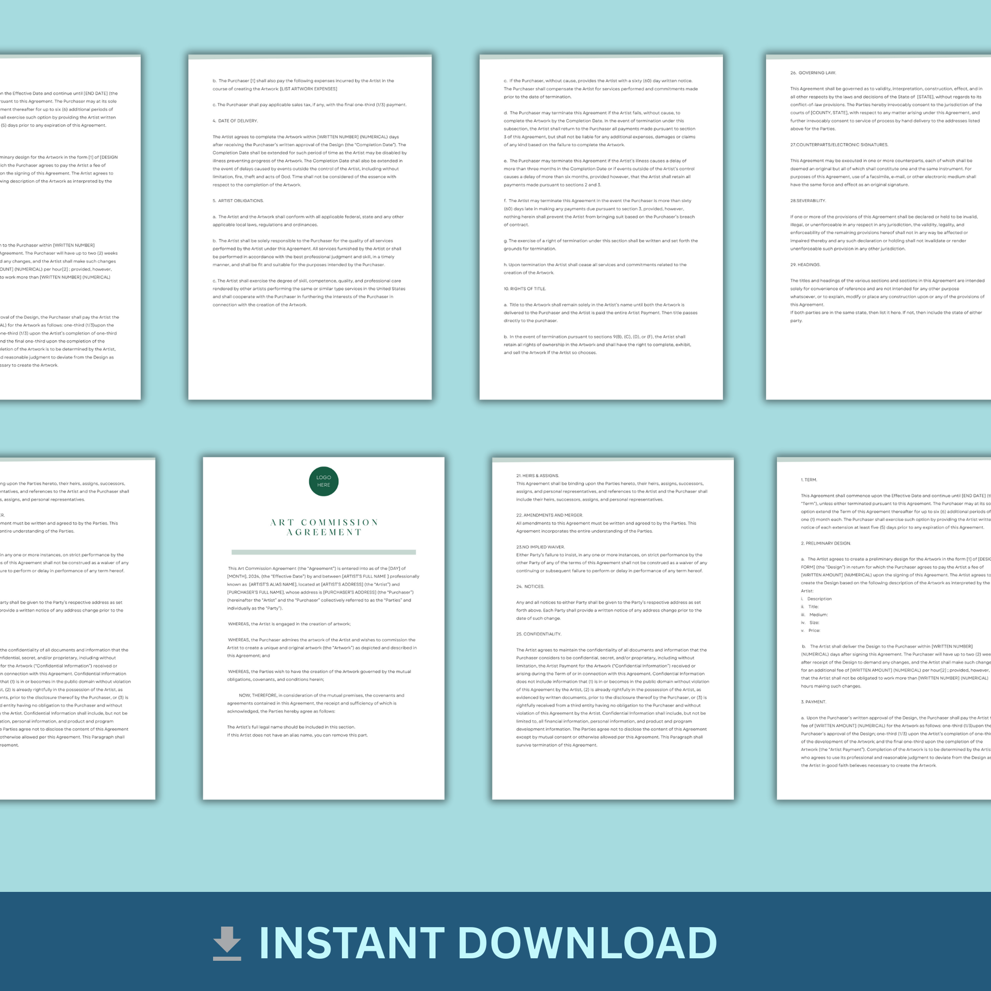 Are you looking for a contract to establish a commission arrangement between an artist and a client? Start with this Agreement.
