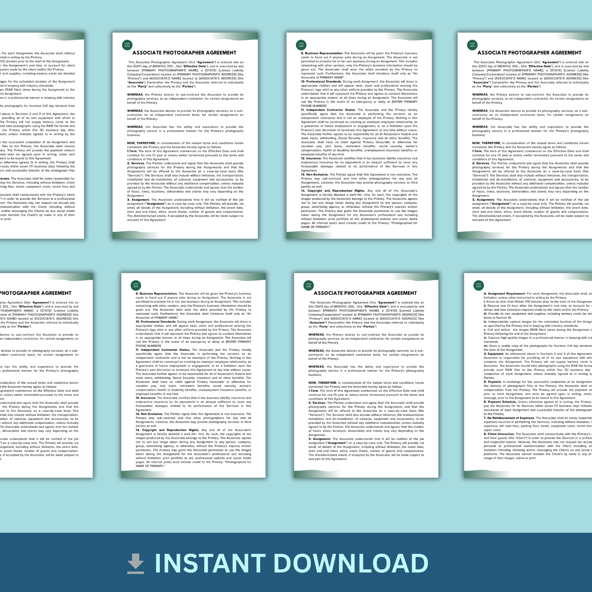 Are you looking to expand your photography business and need a solid contract to hire an associate to provide services on behalf of your company. Start with this Agreement.