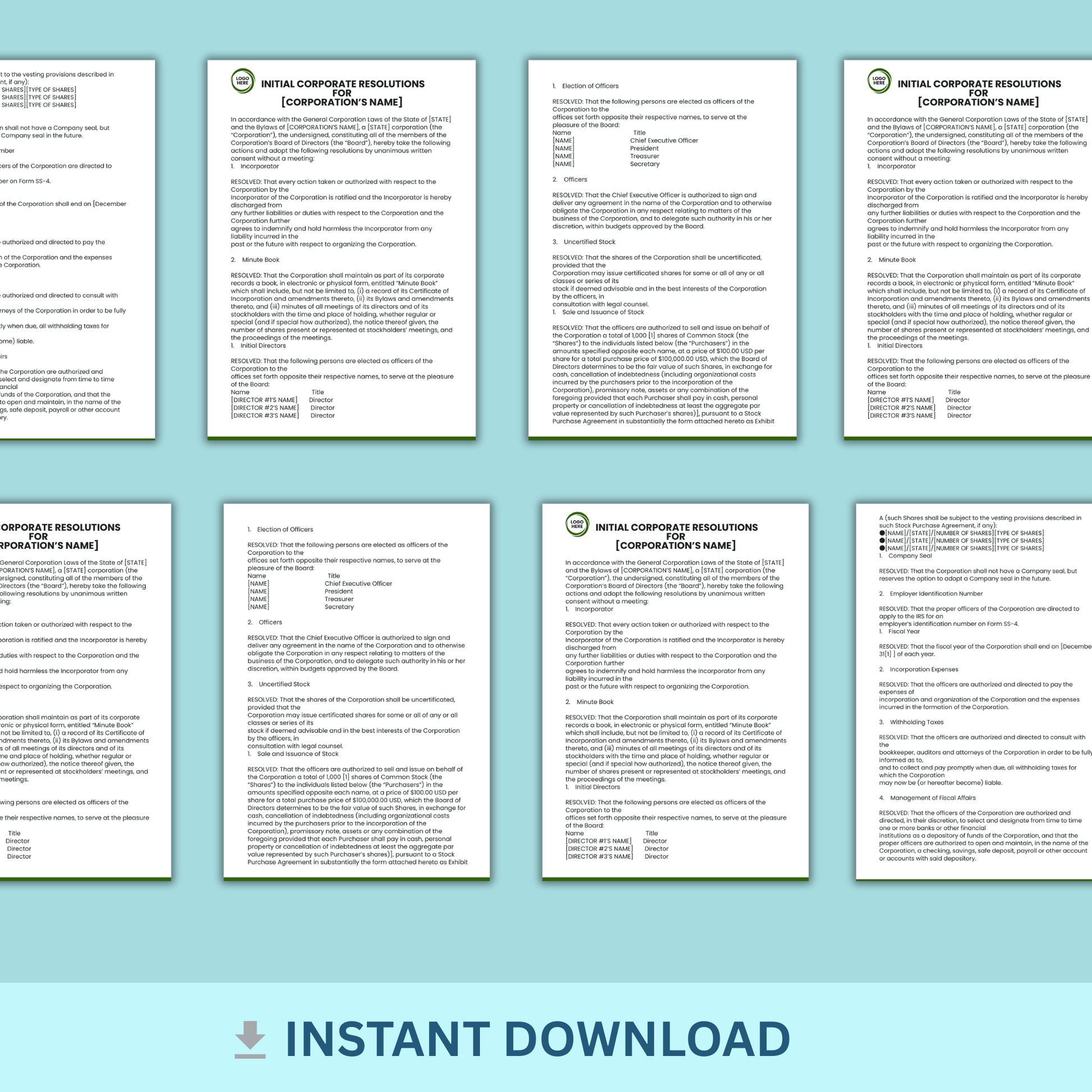 Are you creating a Corporation with multiple owners and need initial corporation resolutions? Start with this Agreement.