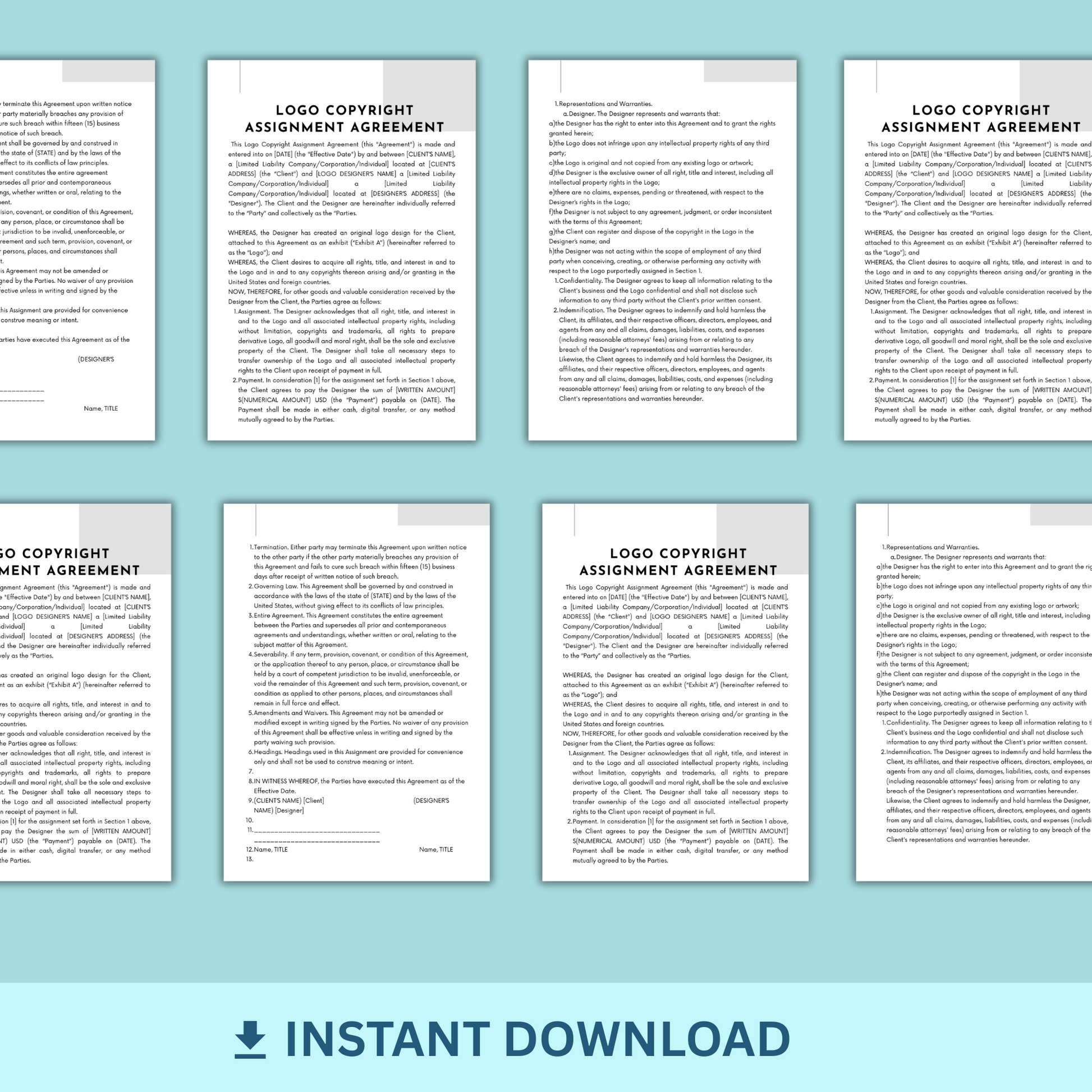 This Logo Copyright Copyright Assignment Agreement is a legal document between the logo designer and the hiring party. This Agreement clarifies the subject logo, payment terms, ownership rights and more.