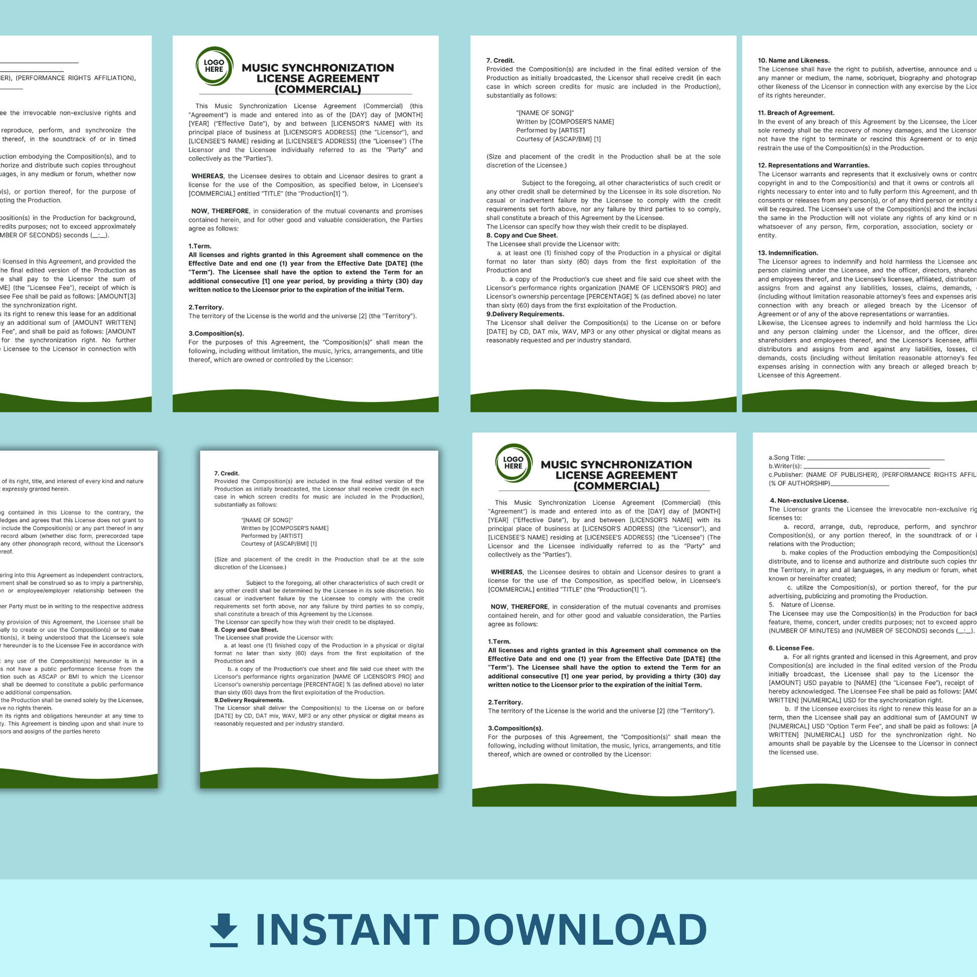 Do you own the copyright to a composition of a song and want an agreement allowing someone else to use it in a commercial? Start with this Agreement.