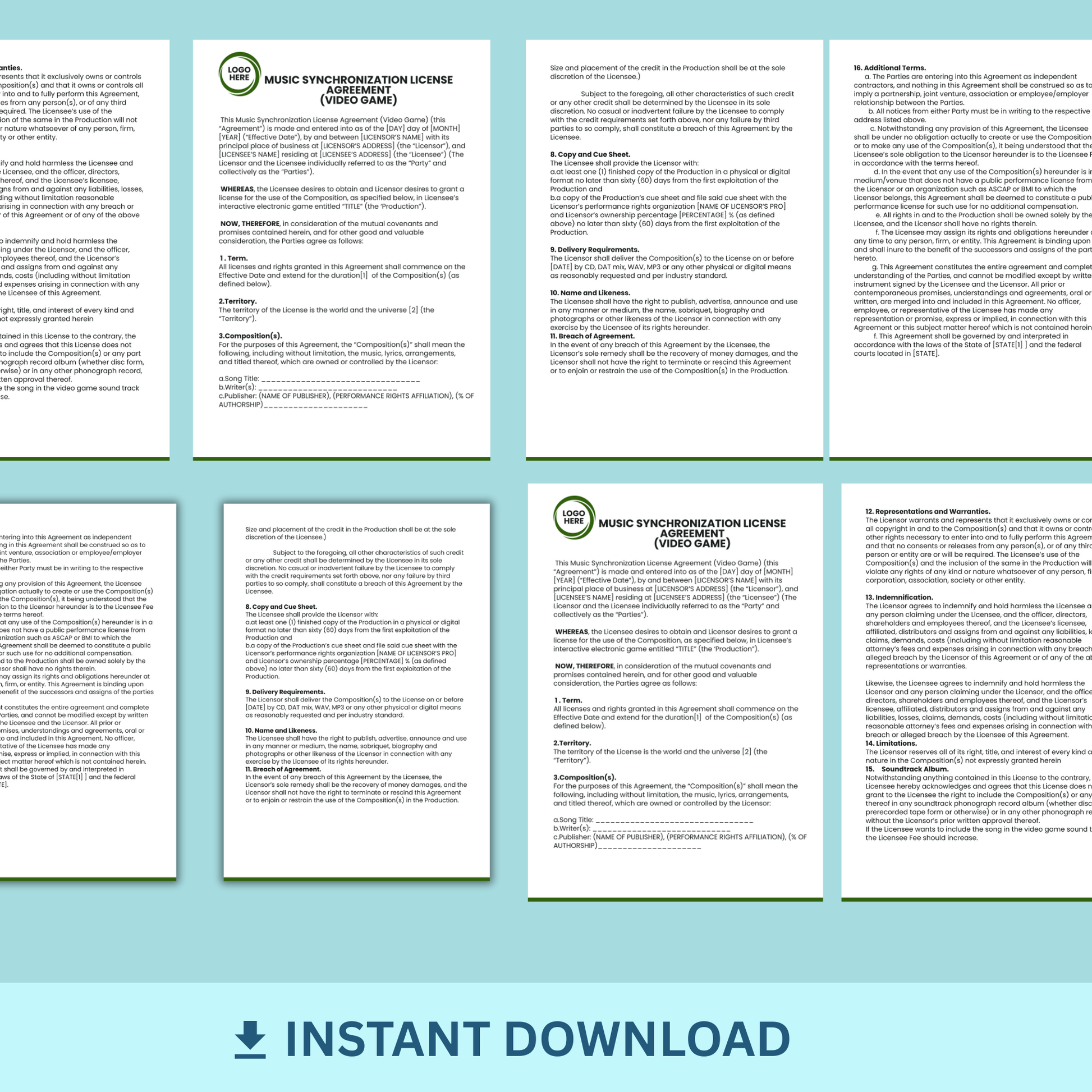 Do you own the copyright to a composition of a song and want an agreement allowing someone else to use it in a video game? Start with this Agreement.