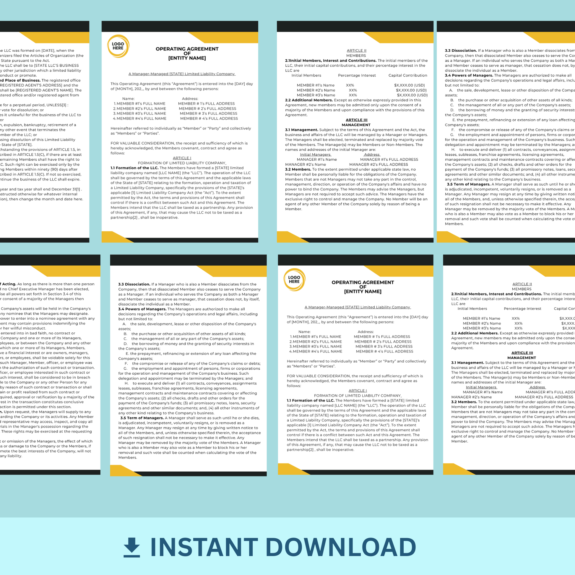 Are you creating an LLC with multiple owners and need an operating agreement? Start with this Agreement.
