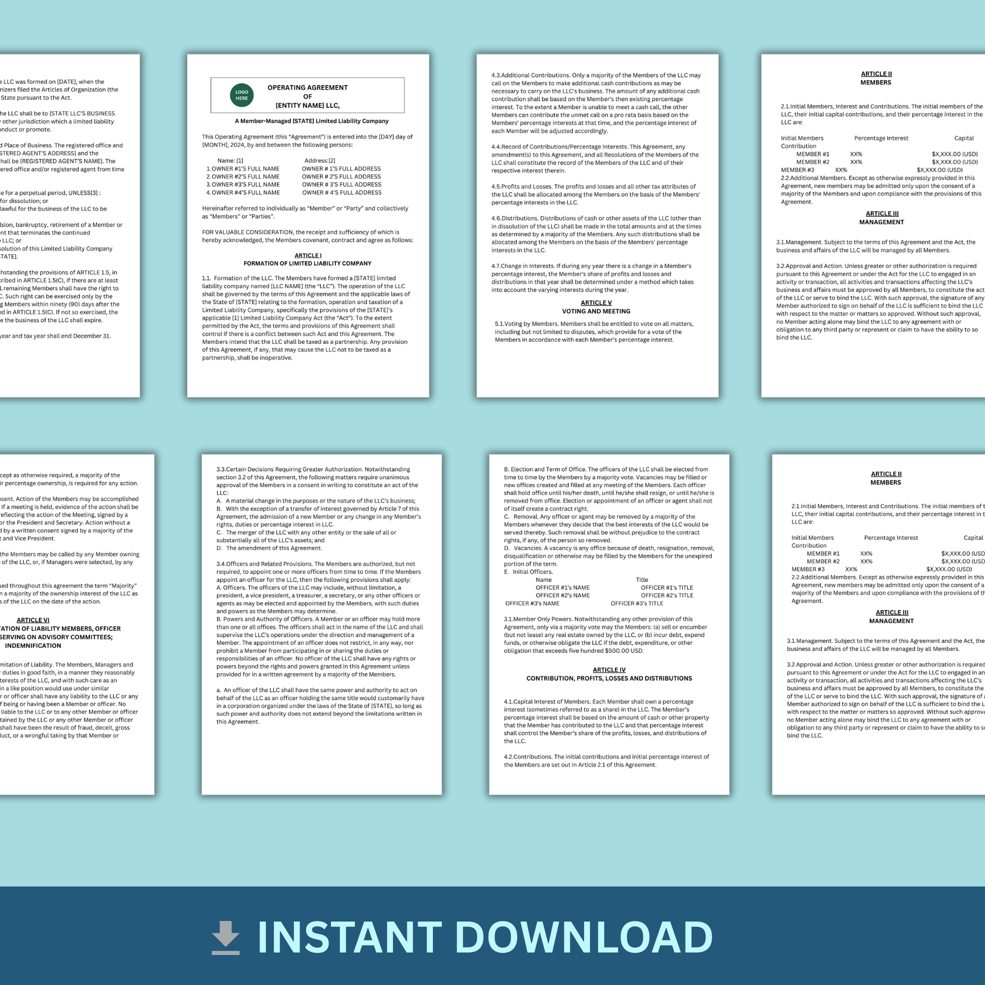 Are you creating an LLC with multiple owners and need an operating agreement? Start with this Agreement.
