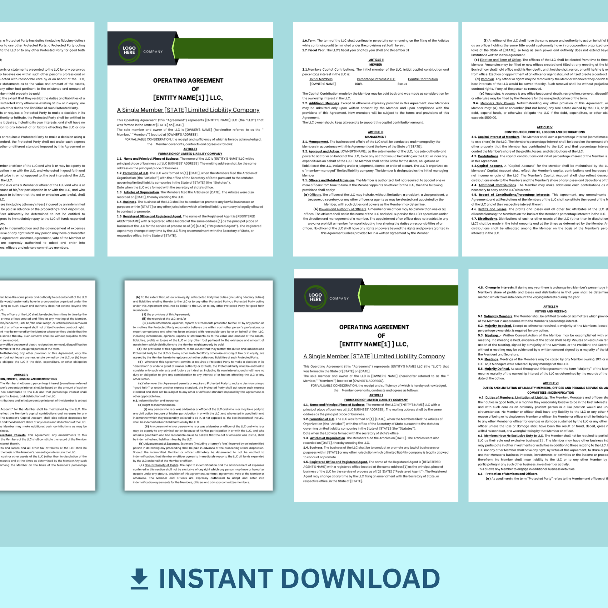 Are you creating an LLC with one owner and need an operating agreement? Get started with this Agreement.