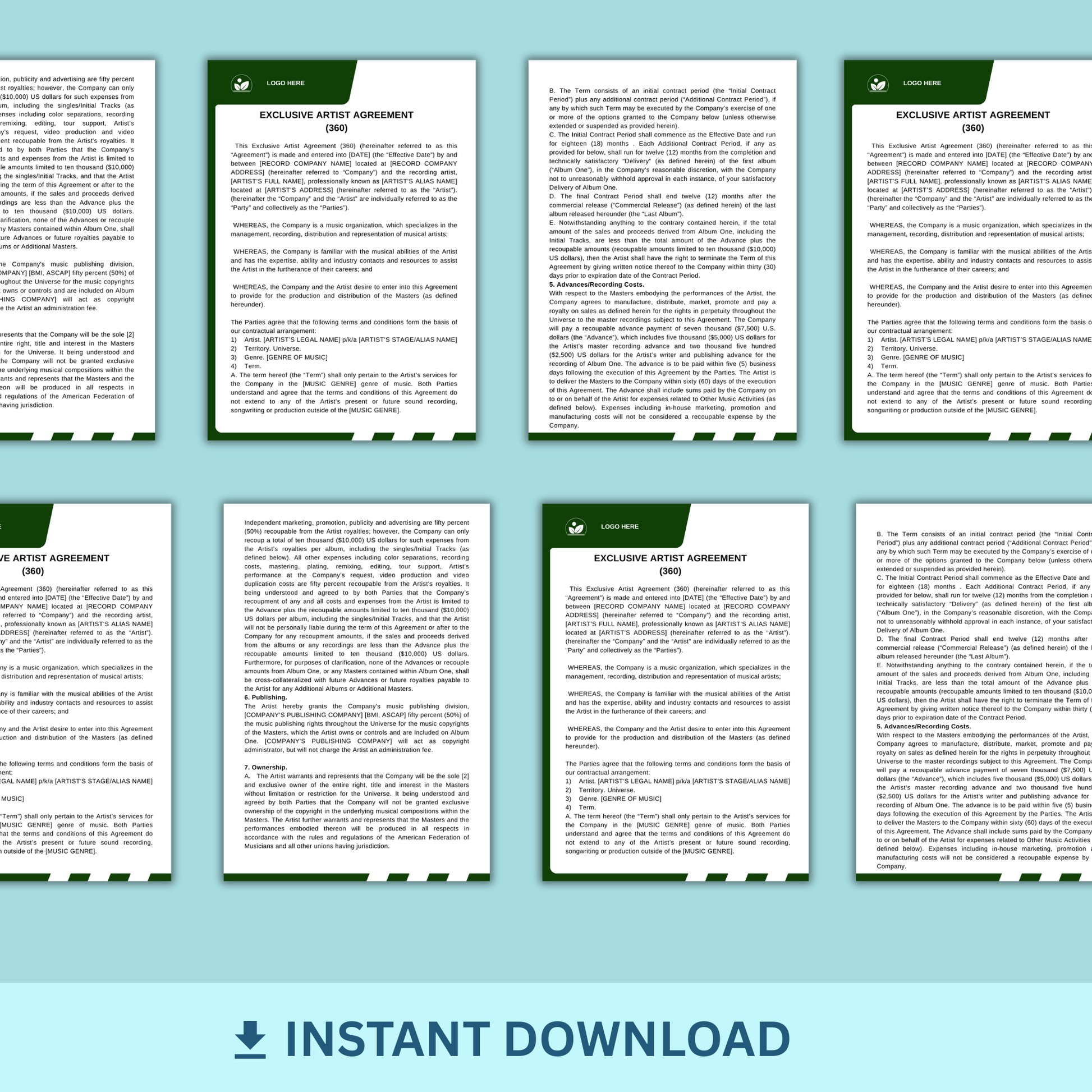 Are you an independent record label interesting in offering a 360 record deal to one of your artists? Start with this Agreement.