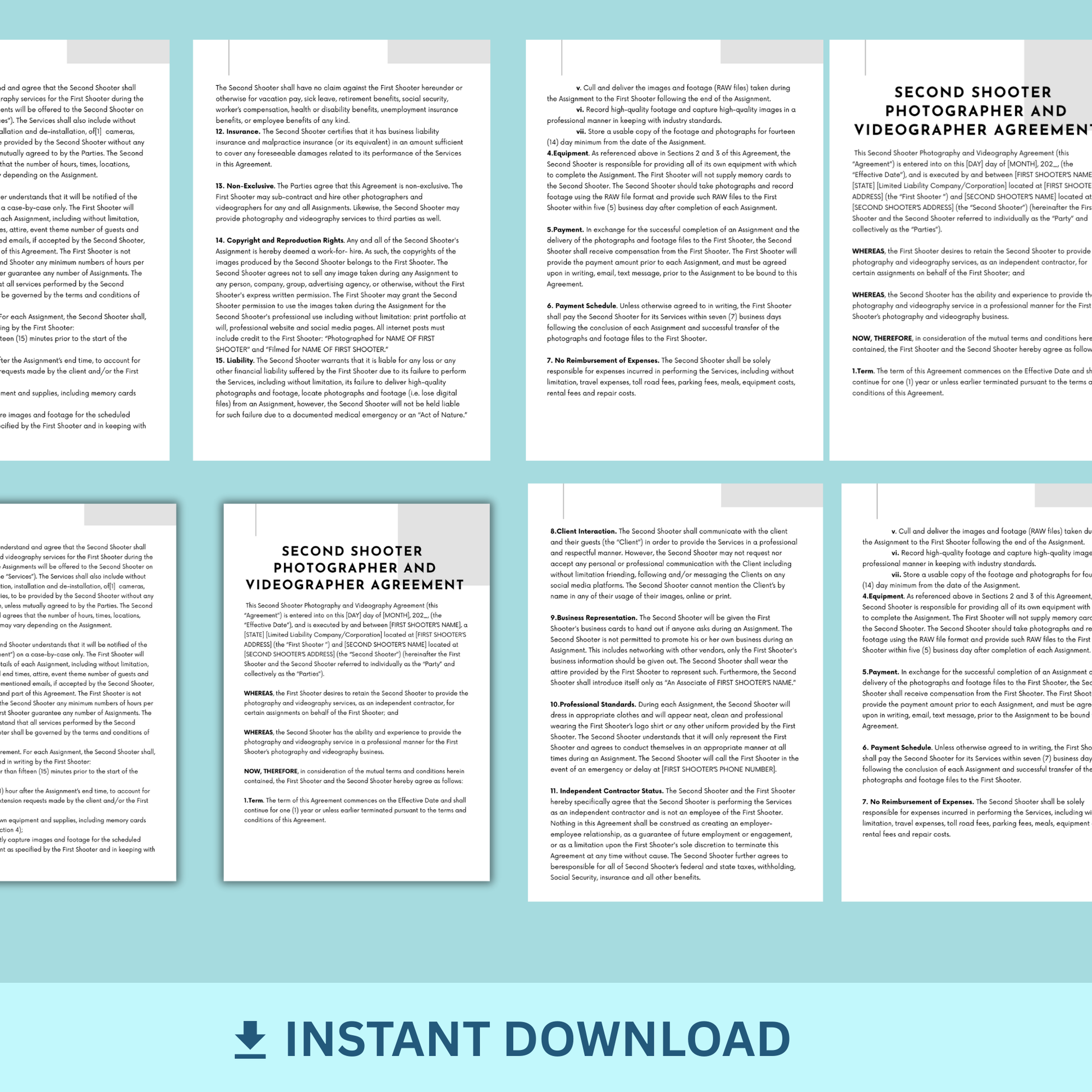 Are you a videographer and photographer hiring a second shooter for help and need a contract to establish the relationship? Start with this Agreement.