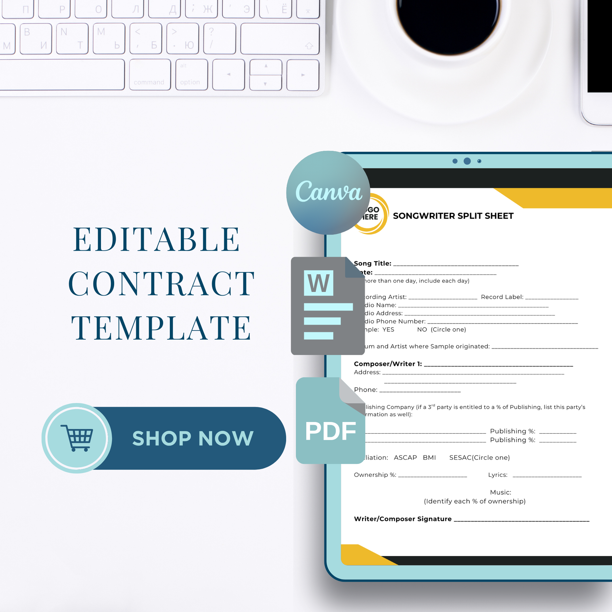 Have you contributed to a song and need a split to formalize your contribution percentage? Start with this document.