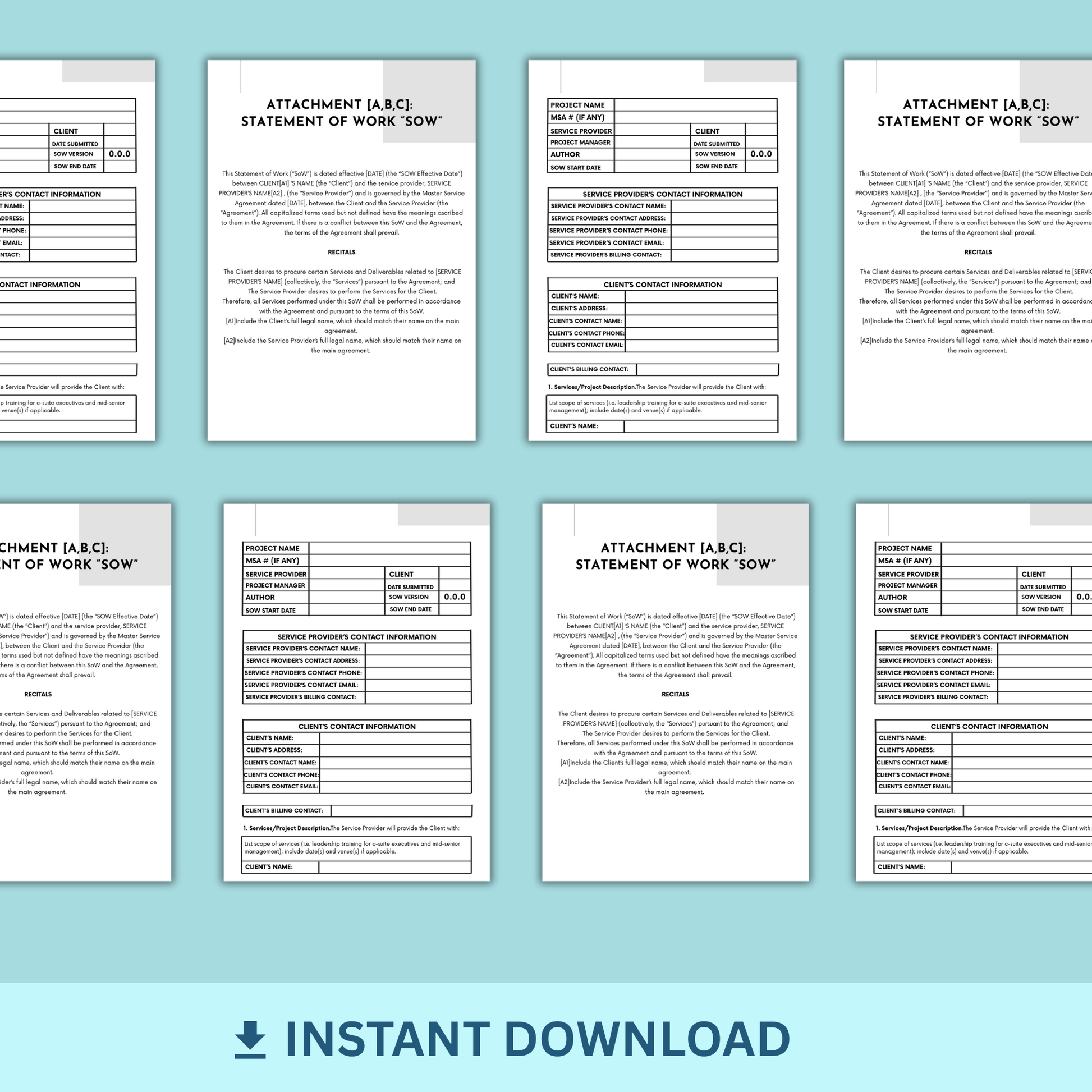 This Statement of Work details the specific services agreed to between the Client and the Service Provider. This Agreement outlines the parties, services, deadlines, deliverables and more.
