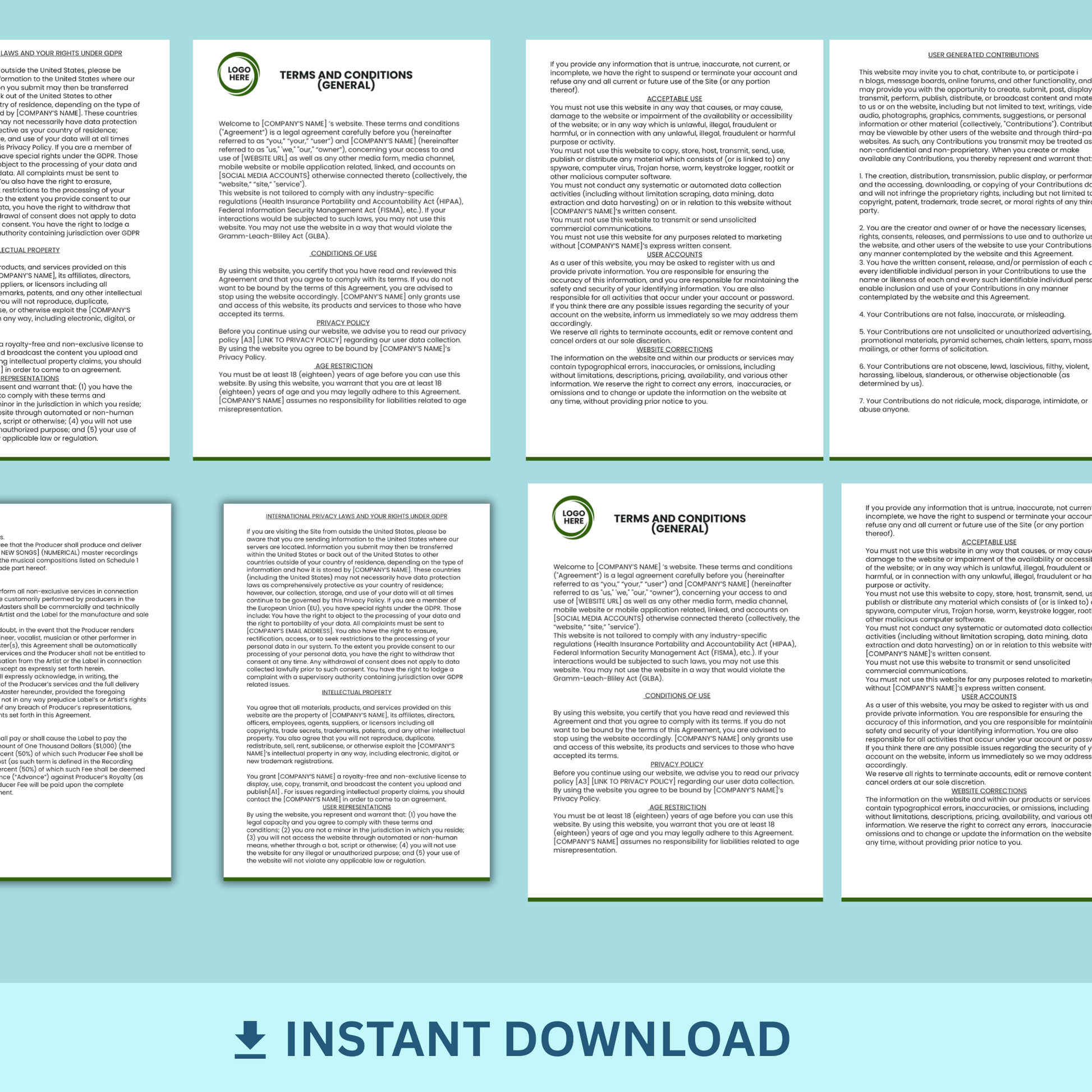 Do you have a website and need to inform your website visitor's the rules regarding their use of your site? Use this Website Terms and Conditions.