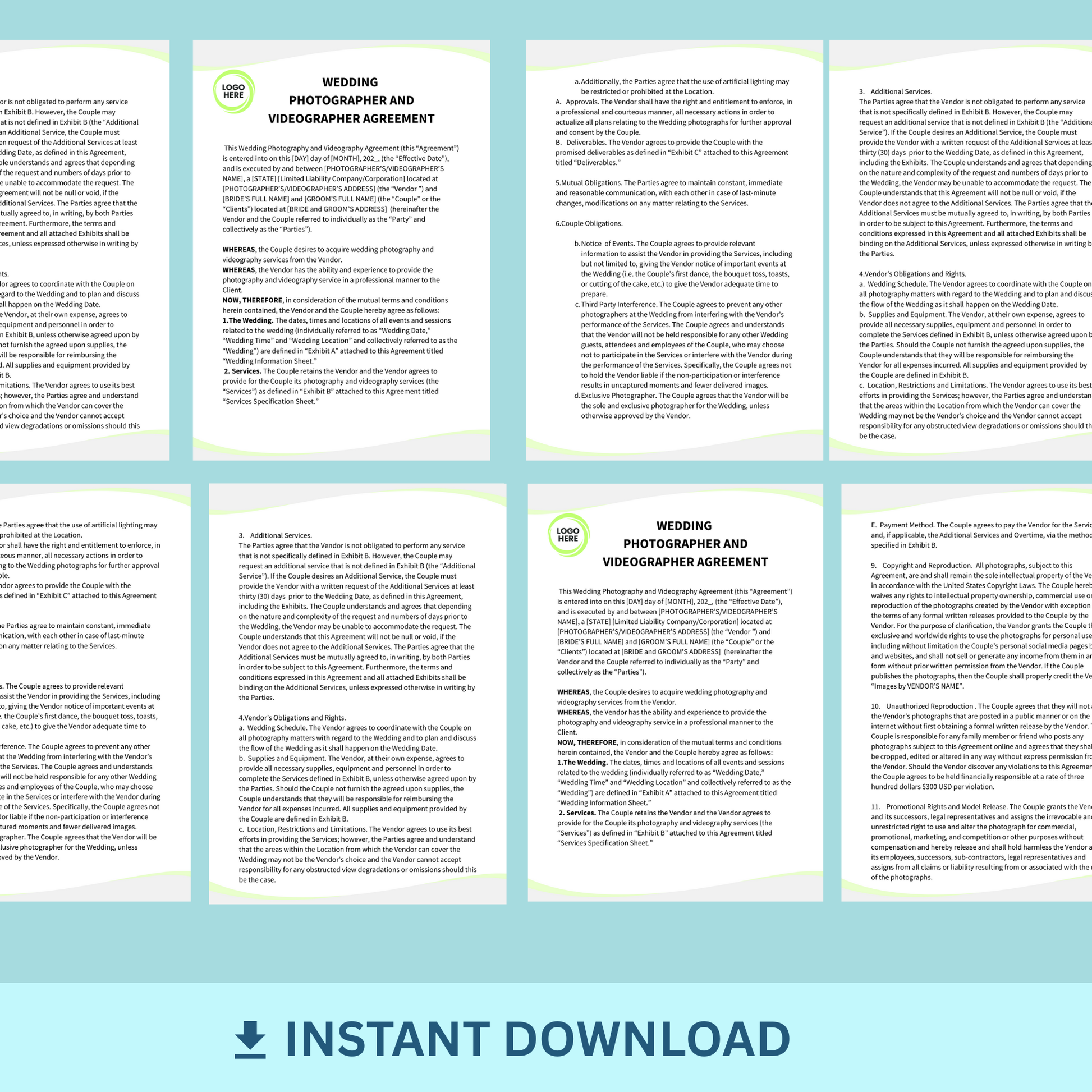 Are you a wedding photographer and videographer and need a solid contract to solidify your next gig? Get started with this Agreement.