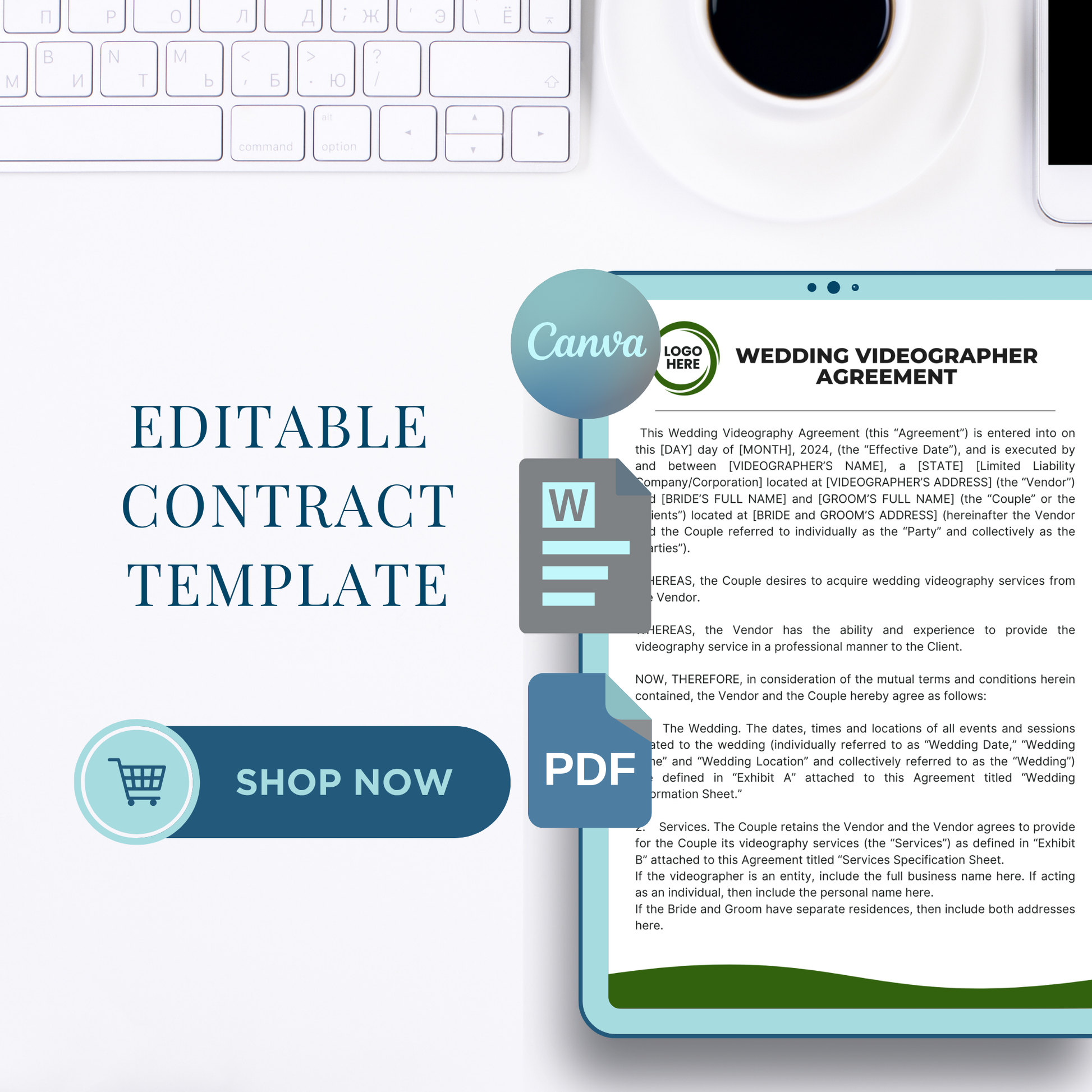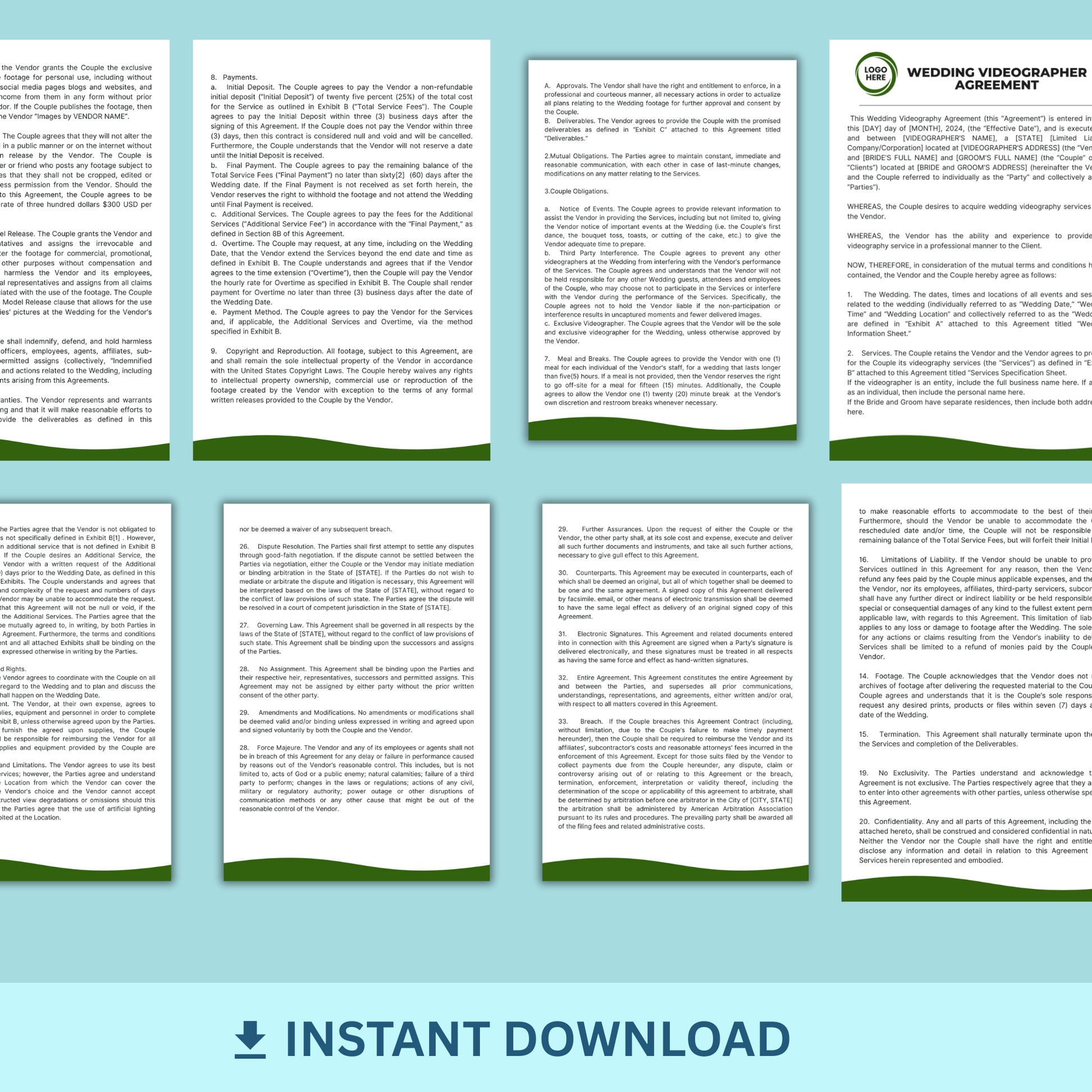 Are you a wedding videographer and need a solid contract to solidify your upcoming gig? Get started with this Agreement.